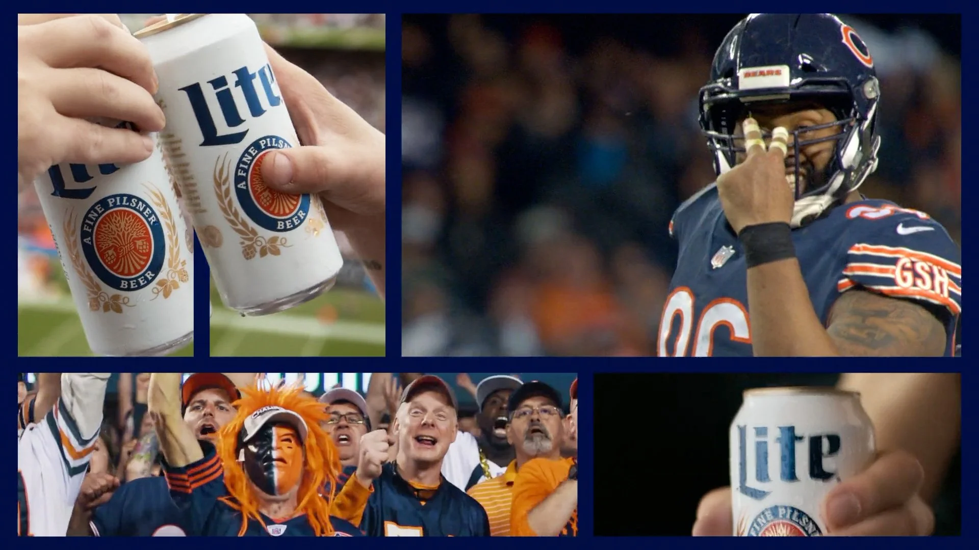 Miller Lite was a sponsor of the teams but not the official beer sponsor of the NFL, given the unusual year we were allowed to use footage from previous seasons, so we decided to remix their iconic anthems with the sounds of the team on the field, fans in the stands, and fans at home.